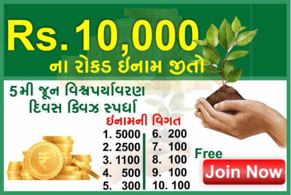 | 5 June વિશ્વ પર્યાવરણ દિવસ ક્વિઝ સ્પર્ધા. | |||